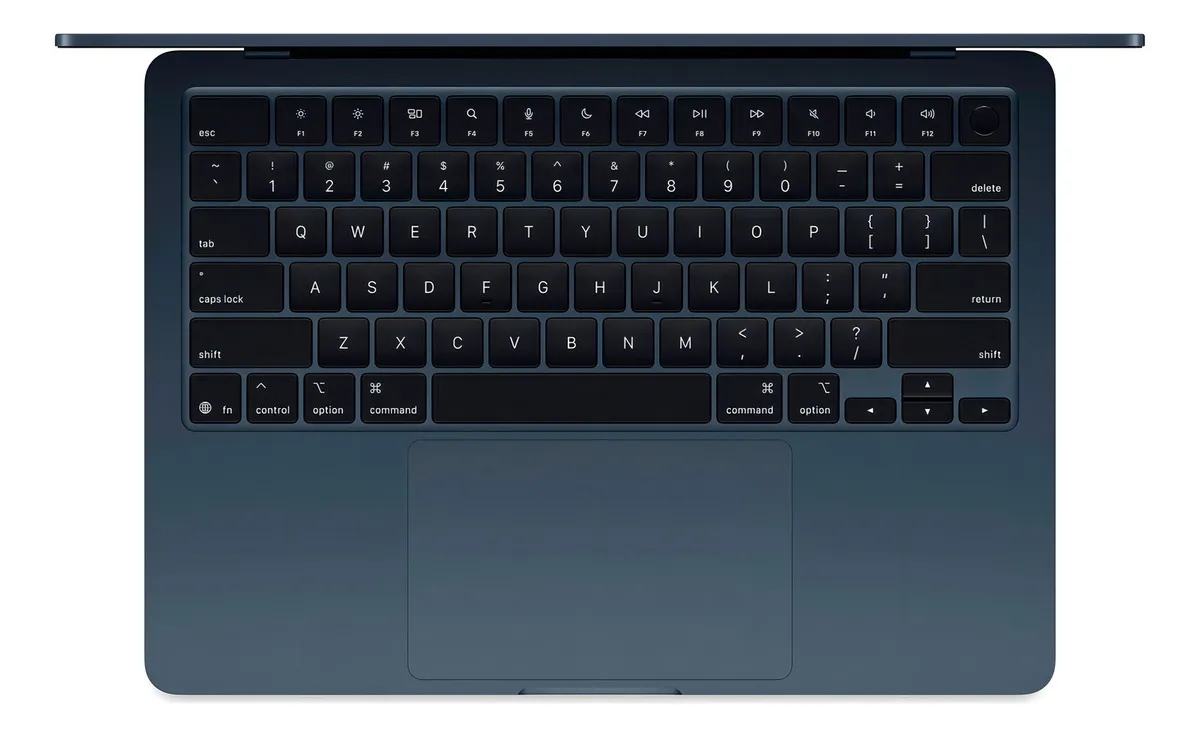 Fabricado en aluminio 100% reciclado, el MacBook Air conserva su icónico perfil delgado, con apenas milímetros de grosor y un peso ligero que facilita su transporte. El acabado en Gris Oscuro (Space Gray) le da un aspecto moderno y profesional.